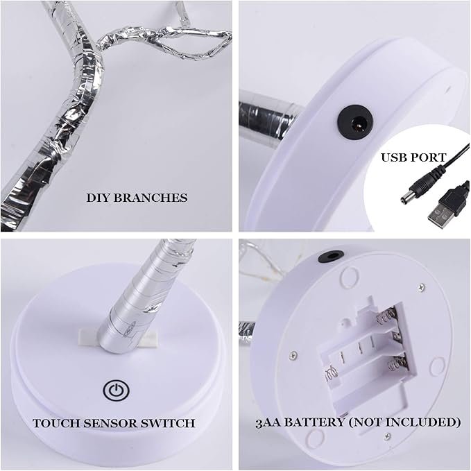 - ➤【USB And Battery Powered】This tree light can be powered by USB or 3 AA batteries (not included), you can flexibly choose any where, easy to use. Using 3 AA batteries, you can move the decoration at will; use USB to save electricity, money and environmental protection. Important: Please unplug the USB cable when using the battery to avoid damage!